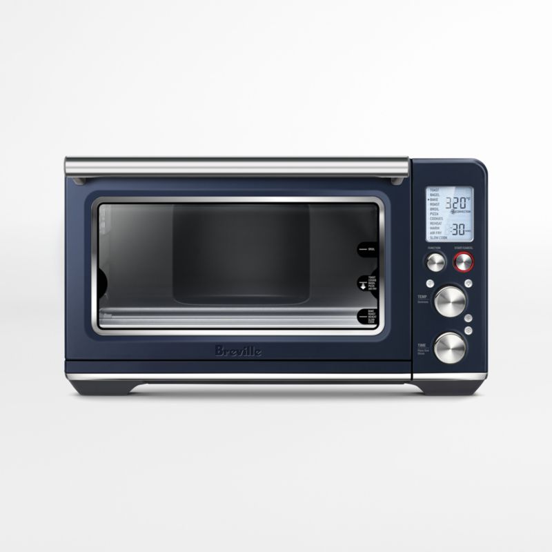 Enjoy guilt-free french fries, chicken wings as well as pizza, baked cookies and more with this multi-tasking air fryer from Breville. Higher temperatures combined with maximized airflow deliver delicious crispy air-fried foods. Smart algorithms and sensitive temperature control eliminate cold spots for precise and even cooking. Take the guesswork out of meal prep by choosing one of 11 cooking functions for toast, bagel, broil, bake, roast, warm, pizza, air fry, reheat, cookies and slow cook. Reducing cooking times up to 30%, this appliance saves time, opens up possibilities and looks great on the counter with its brushed stainless steel accents and luxe blue finish inspired by Damson plums.