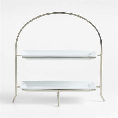 Made with a wax-resist method for a durable and textural design, these delightful stoneware platters each feature a trio of white pines on a background of deep green glaze. The rectangular serving plates are detailed with frame-like edges to put the focus on freshly decorated cookies or small bites. The set of two tree platters also makes a lovely holiday gift.