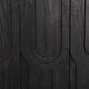 Living room storage gets an artisanal upgrade in our striking Camila media console. Like a sculpted relief panel, the cabinet showcases a repeating motif of curvilinear forks handcarved into each of the wood cabinet's six doors. The seamless design unites the wood console with rhythmic pattern, accentuated by the aged black finish. Double-doored cabinets open with finger pulls at the top to reveal three roomy storage compartments, each with a removable shelf.