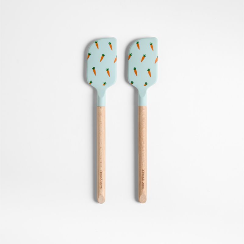 Carrot Blue Silicone and Wood Mini Scraper Spatulas, Set of 2