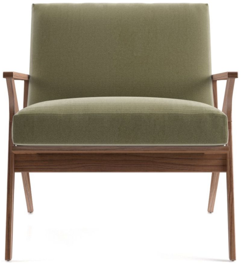 The Cavett chair's slight recline angles you back comfortably with supportive cushions upholstered in a polyester basketweave that layers varied tones of brown. The Cavett Chair is a Crate and Barrel exclusive.