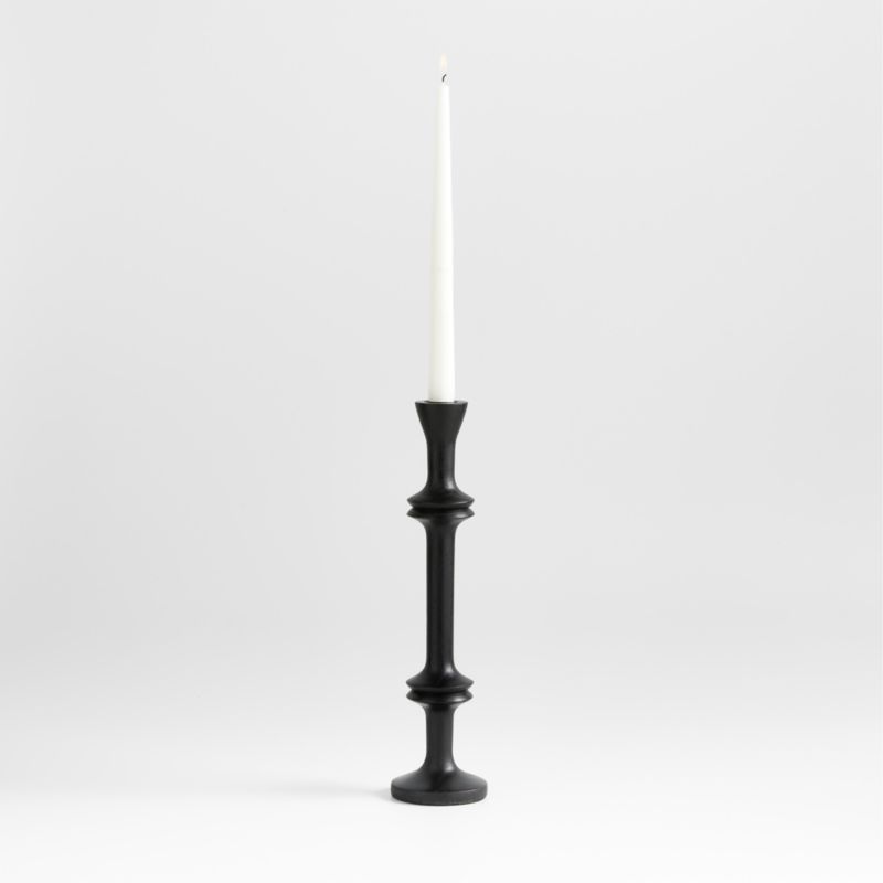 Century Black Acacia Wood Taper Candle Holder 14.5"