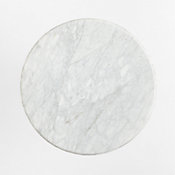 Exquisite materials and dimensional detailing accentuate the modern simplicity of our Chelsea dining table. A double bullnose edge puts the focus on the gorgeous veining of the round Carrara marble top. Set on a circular stepped base, the columnar pedestal is made of natural-finished walnut with vertical ribbing and an inset collar of burnished brass. Perfect for high dining, the bar-height table seats up to three.