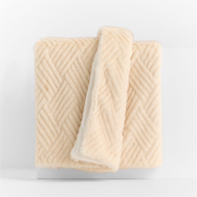 Fabulously faux, our Cici throw mimics the look of natural fur in your choice of three warm neutrals. Inspired by a vintage wristwatch design, the raised basketweave motif adds dimension to the tactile appeal as well as Art Deco-inspired geometry that gives the blanket its Old Hollywood vibe.