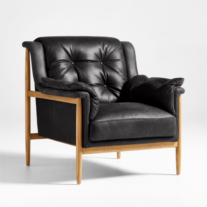 A Danish way with wood and a Brazilian take on modernism blend beautifully in our Cigar chair. Tapered round rods of natural oak wood shape the simple frame, warmed by a rich honey stain. Nestled within the angular support resides a luxurious seat upholstered in burnished dark grey leather. Padded cushioning wraps the arms, attached at points with buttons for a touch of vintage charm. The back cushion billows with deep button tufts for the look and indulgent comfort of a classic club chair.By choosing FSC®-certified furniture, you are supporting responsible management of the world's forests.
