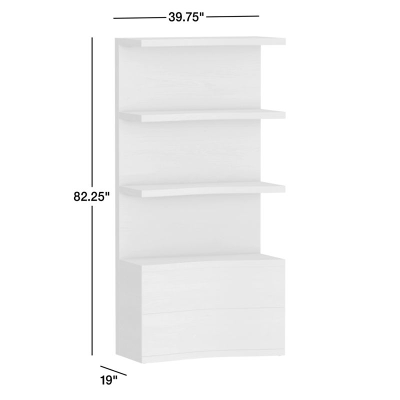 Contemporary and curvaceous, Coast's dynamic design flows an undulating facade. Open shelves follow the same wavy curves as the set of drawers, creating varying depths for display and storage. Made of white oak with a fresh whitewashed finish, the bookcase can be used in multiples for the look of a custom built-in.