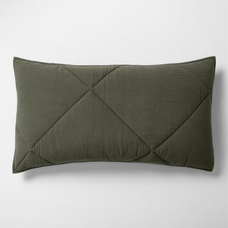 Quilted on the diagonal with oversized diamonds, this pillow sham makes the bed with laid-back yet luxe feel. Mossy brown-green cotton weaves the unique crinkle finish for a featherlight, updated take on quilting with texture and depth. Voluminous filling adds plush comfort and coziness year-round. Pair the sham with our other Aire Cotton Crinkle or Burnt Green bedding for a fresh and relaxed look.
