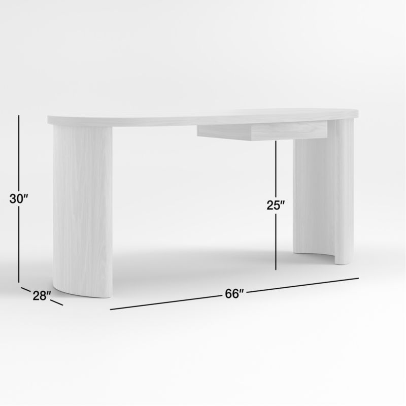 Inspired by nature's freewheeling forms and modernist shapes, our Courbe desk defies expectations. Made of solid oak, the desk is meant to float in a room so its organic curves and striking cathedral graining can be appreciated from all angles. Slab legs anchor the desk with concave contours, echoing the curves in the asymmetrical kidney-shaped top. Adding to the desk's freeform design, a single offset drawer floats underneath. Our exclusive Courbe wood desk lends drama to a design-forward office and can also serve as a contemporary console table in the living room.