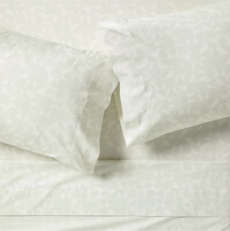 Cozy Cloud Zen Geo Muted Teal Washed Organic Cotton Kids Queen Sheet Set
