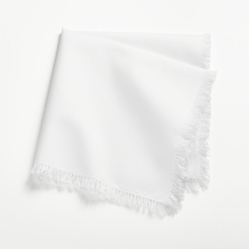 Finished on all four sides with generous fringe, our Craft napkin in crisp white sets the table with a relaxed yet sophisticated flourish. The pure organic cotton napkin offers laid-back style at weeknight meals and elegant dinners then cleans up easily in the washing machine and dryer. For a coordinated table, add our white Craft fringe tablecloth or table runner.
