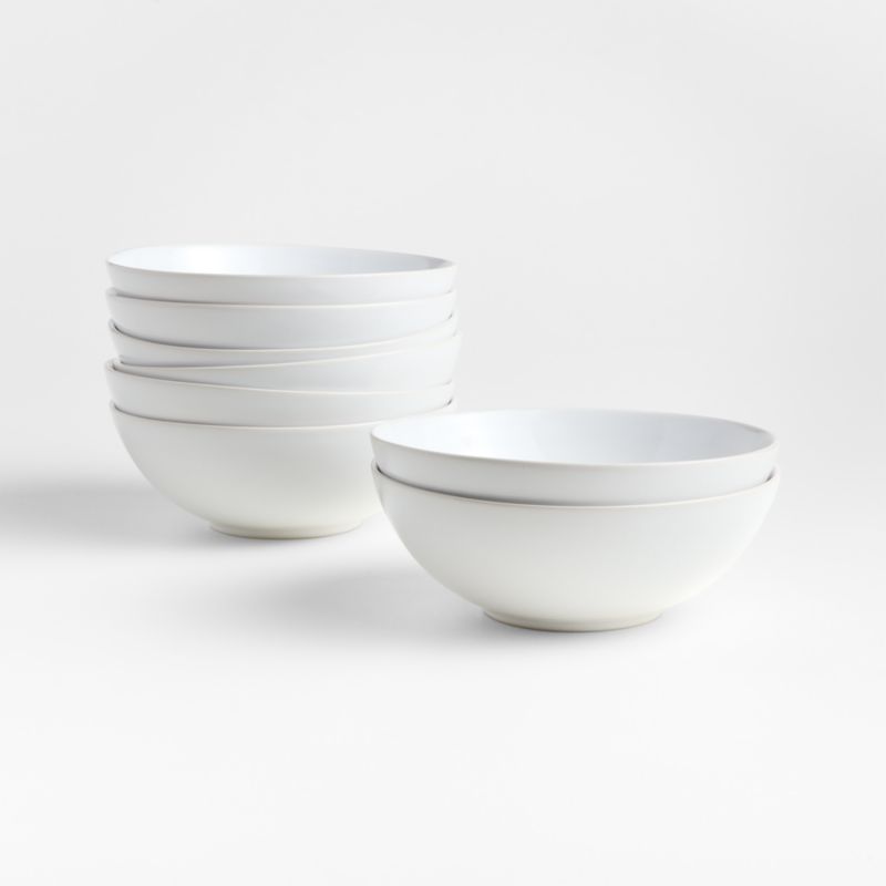 Our customers love our bestselling Craft dinnerware and serveware collection as much as we do, so when they requested a glossy white finish we were only too happy to accommodate. Mix and match this fresh new version with the matte Craft colors, or style with our other white dishes. A study in delicious contradictions, our set of eight Craft bowls is strong and durable yet light and refined to suit everyday use and elegant occasions. The bright white glaze highlights the bowls' clean coupe curves while resisting scratches. Complete the inviting look with our Craft table linens.