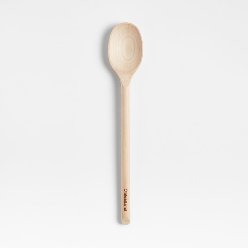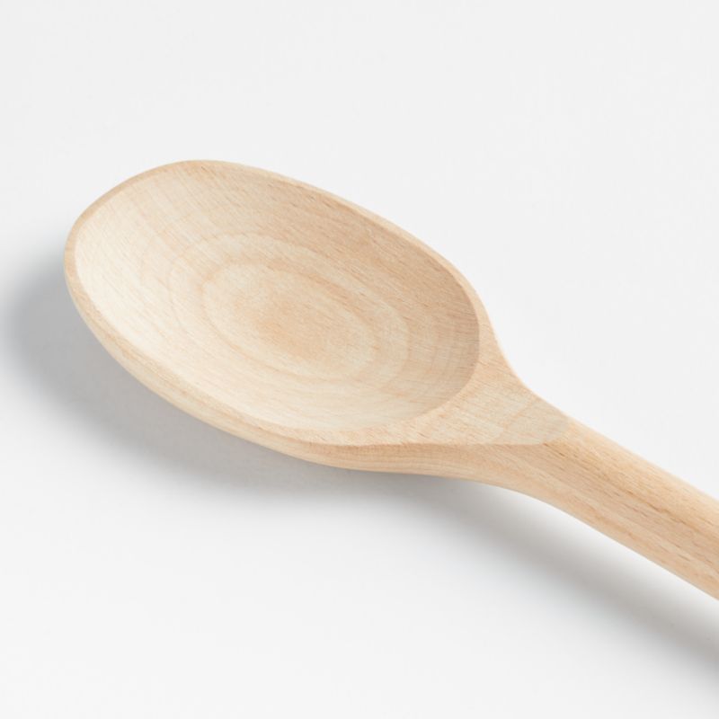 Stir, scoop and serve with our signature beechwood spoon. The essential utensil ably stirs the thickest sauces, doughs and batters—or folds the most delicate meringues. Sustainable beech shapes a modern organic tool with a warm, classic look and a cylindrical handle for a sturdy grip. We love the way the refined beveled edge finishes the elongated handle with a dynamic detail. Combine the spoon with the other exquisitely proportioned utensils in our exclusive Crate & Barrel collection for a well-outfitted workspace that's up to any cooking challenge.