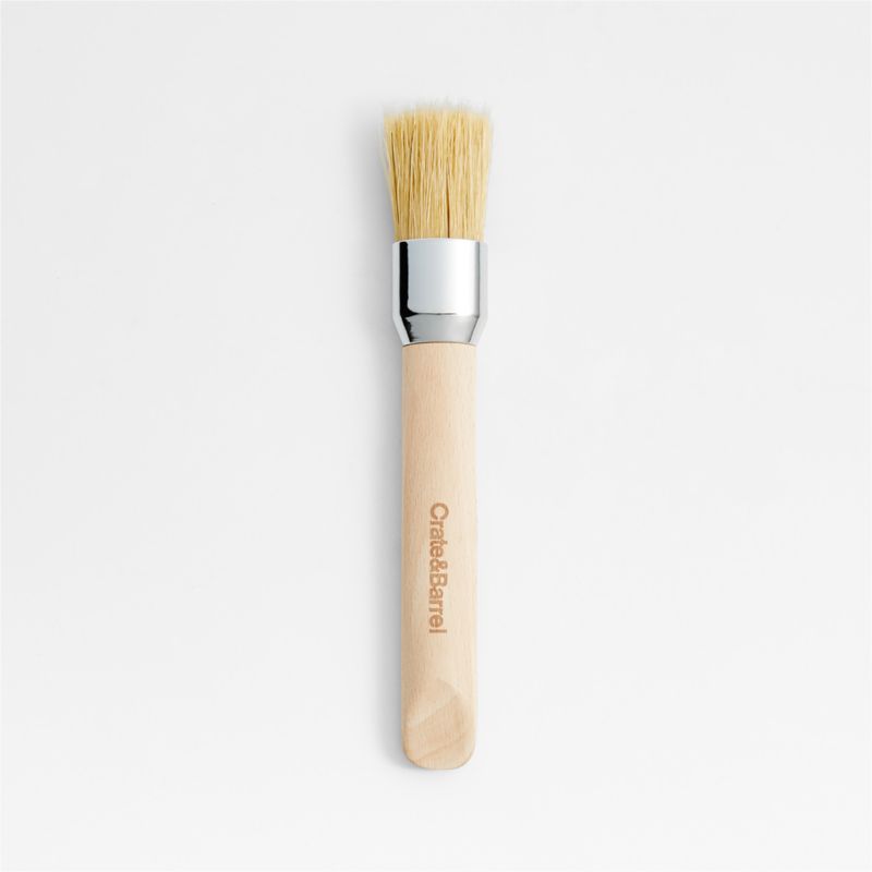 Brush infused simple syrups onto cake layers, egg wash onto croissants or a glossy glaze onto fruit tartlets with our signature small pastry brush. Beechwood, mirror-polished stainless steel and natural bristles shape the sleek cake-decorating tool with a cylindrical handle for a sturdy grip and a professional look. We love the way the refined beveled edge finishes the handle with a dynamic detail. Combine with the other exquisitely proportioned pastry tools in our exclusive Crate & Barrel collection for a well-outfitted workspace that's up to any baking challenge.