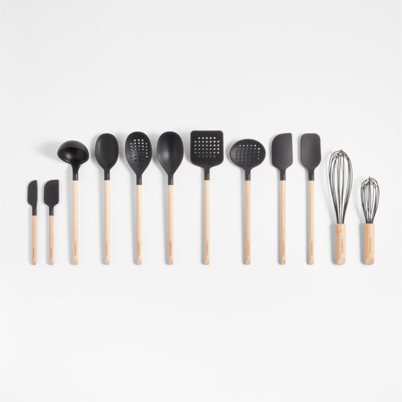 Crate & Barrel Wood and Black Silicone Utensils, Set of 10