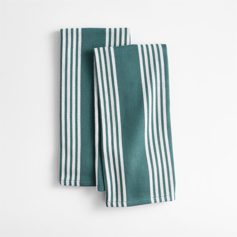 Cuisine Green with White Stripe Organic Cotton Kitchen Towels, Set of 2