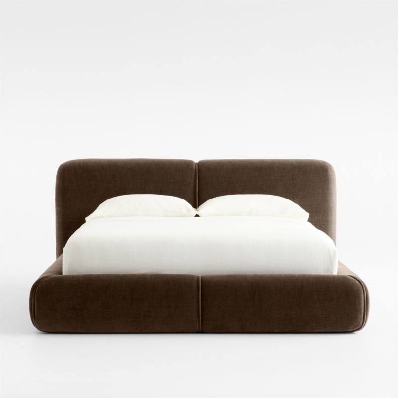 Our Curios bed speaks pure comfort with cozy upholstery and low profile. Inspired by 1970s design, the bed looks contemporary yet approachable with a rounded, well-cushioned headboard and rails upholstered in soft chenille. Jumbo welt detail adds to the bed's exuberant style.