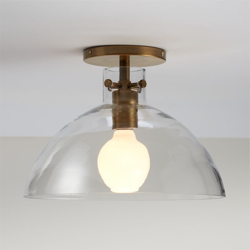Detailed with oversized knurled screws, our Dakota flush mount light balances clean modernity with subtle industrial beauty. The result is a timeless light fixture with a straightforward presence overhead. Hand-blown by talented artisans, the large clear glass shade shapes a generous dome that shows off your choice of bulb and the gleaming brass base. Our exclusive mix-and-match Dakota collection offers versatile lighting options with a custom feel.