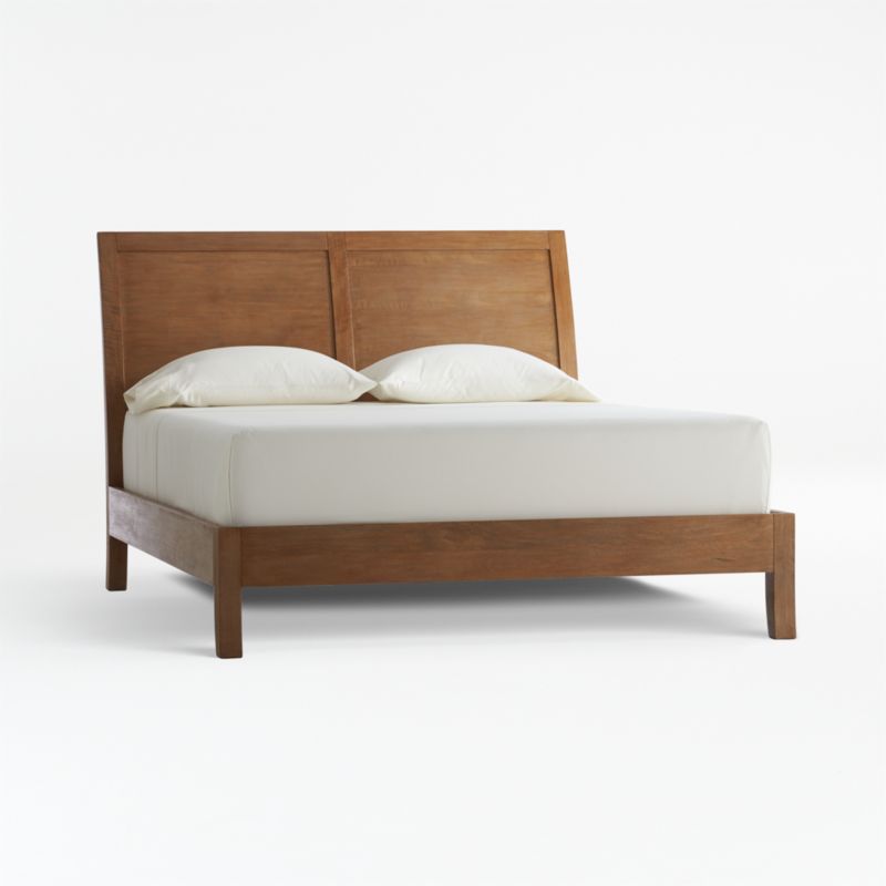 Sweeping in scale with clean lines, Dawson is a handsome classic. Sleigh-style bed curves a high-backed headboard crafted from mango wood veneer. Each piece has a textured surface—wire brushed and grey-washed with a toner for a serene matte finish—to highlight the wood's distinctive character.