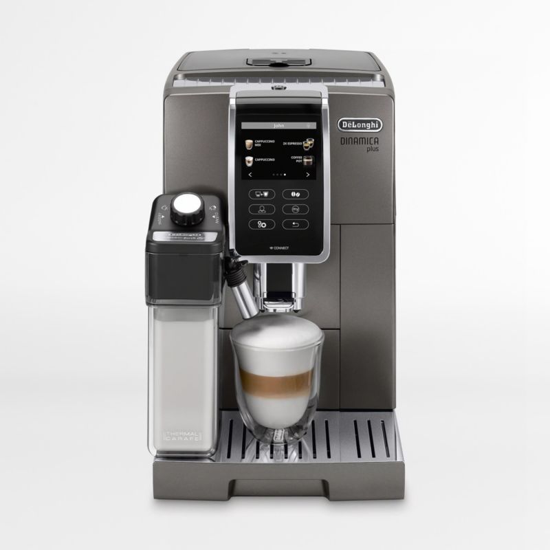 Automated and programmable, this sleek stainless steel machine with a titanium finish takes coffee from beans to brew quickly and precisely. The adjustable steel burr grinder features 13 grind settings for coffee, iced coffee and espresso drinks, while the milk steamer automatically froths both dairy and alternative milks to perfection for lattes, cappuccinos, flat whites and other espresso-based drinks. Choose from the 16 preprogrammed beverages, or program one-touch custom recipes with your preferred size, brew strength and amount of milk. This coffee machine also makes the most exquisite iced coffee: De'Longhi's Over Ice function creates smooth, full-bodied iced coffee that is never watered down.