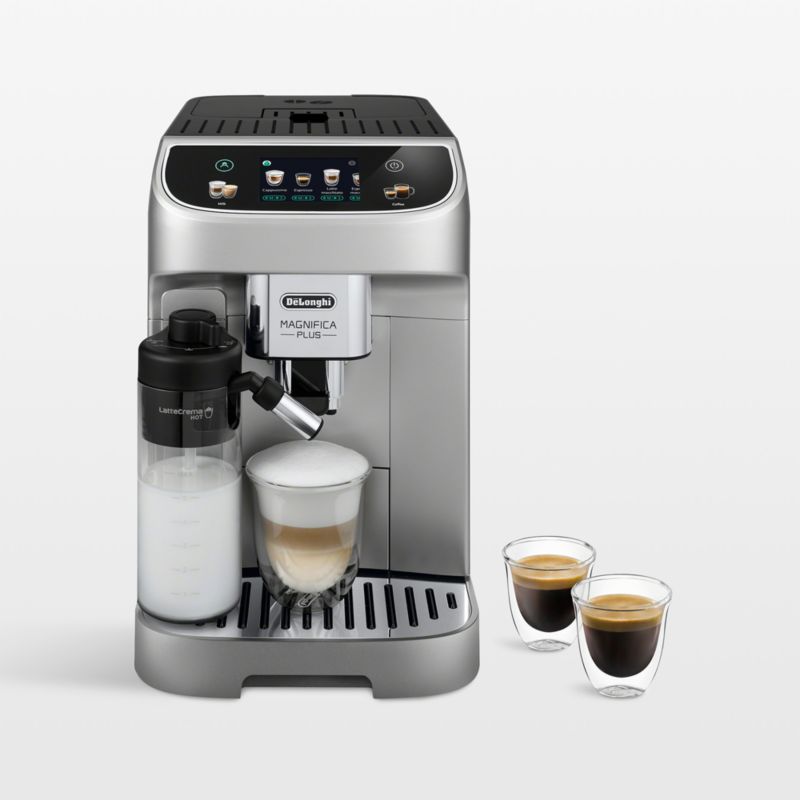 Brew rich espresso and froth velvety foam with this compact espresso machine, which creates cafe-quality drinks on your countertop. Choose from among 18 drinks and adjust the settings—coffee strength, drink size, froth density and fineness of grind—so that each cappuccino, latte and macchiato suits your preferences. The LatteCrema system froths dairy and plant-based milks into dreamy foam with your desired texture. Four user profiles allow everyone to save their customized drink options. With its streamlined construction and gleaming metal accents, the Magnifica Plus looks sleek in your kitchen.