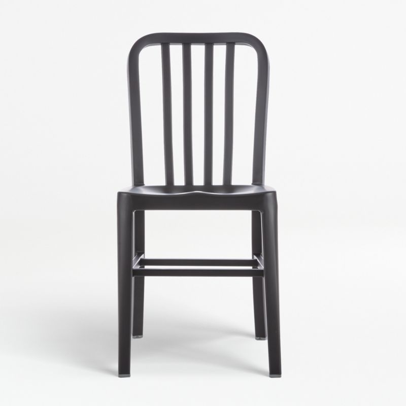 With its modern attitude and clean design, our aluminum Delta dining chair is a Crate and Barrel classic, now with a smart matte black finish. Contemporary with an industrial nod, the lightweight chair ensures a comfortable sit with a contoured back and molded seat.