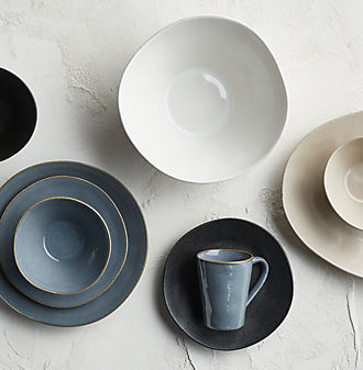 Sleek and stunning stoneware in warm, contrasting glazes with the feel of hand-thrown ceramics.
