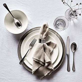 Make mealtime a feast for the eyes with a modern dish set suited to your unique tastes. When choosing a dinnerware collection, let your choice of dish color make a statement about your aesthetic. If you gravitate towards bold design, consider a colorful dinnerware set. Solid blue or green stoneware dinnerware sets evoke a coastal feel; complement your plate set with an ocean-inspired centerpiece such as candle lanterns with shells or sand dollars. For a more modern look, go with a darker dish color option. Any meal looks striking when plated against black or charcoal grey dining plate sets. Pair with simple table linens—a white tablecloth or runner alongside cloth napkins in the same tone ensures all eyes stay on the tableware set. Looking to add just a little color to your table? Dinner sets with colorful rims add a playful touch without overwhelming the tablescape. Similarly, a set of dinner plates finished with a light-colored reactive glaze adds a level of soft detail and subtle originality. And don't forget about holiday plate collections; Christmas dinnerware makes yuletide feasts feel even more special.
