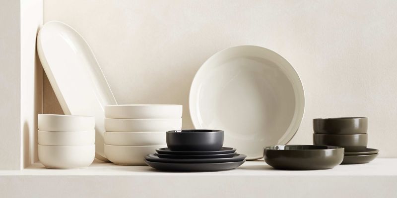 Everyday dinnerware with glazed interiors to avoid scratching and matte exteriors for a modern finish.