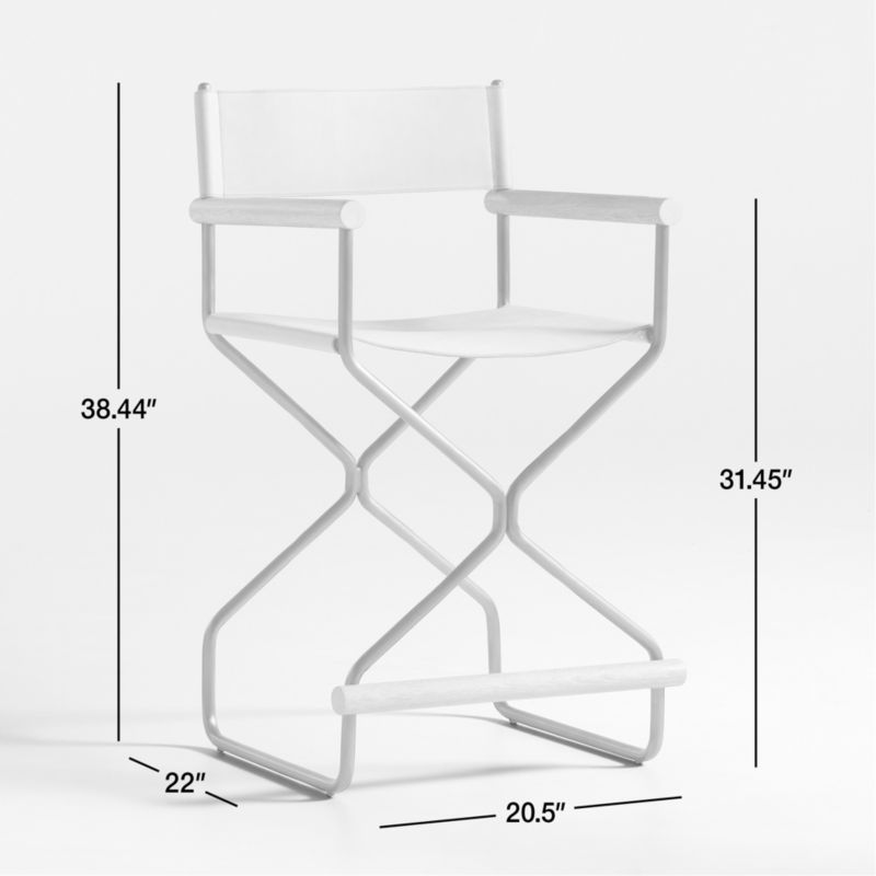 A new take on the classic director's chair. Updated with high-end materials and finishes, our Dorota counter stool brings the iconic X base, slender arms and sling seat and back to a counter, kitchen island or high-dining table. Buttery tan leather shapes the form-fitting back and comfortably taut seat, while rods of cerused oak in a harmonious hue serve as arm- and footrests. Shaped with sinuous curves, the stainless steel base is finished in an aged pewter patina. We love the subtly gleaming metal juxtaposed with the warm natural materials for a modern organic look.