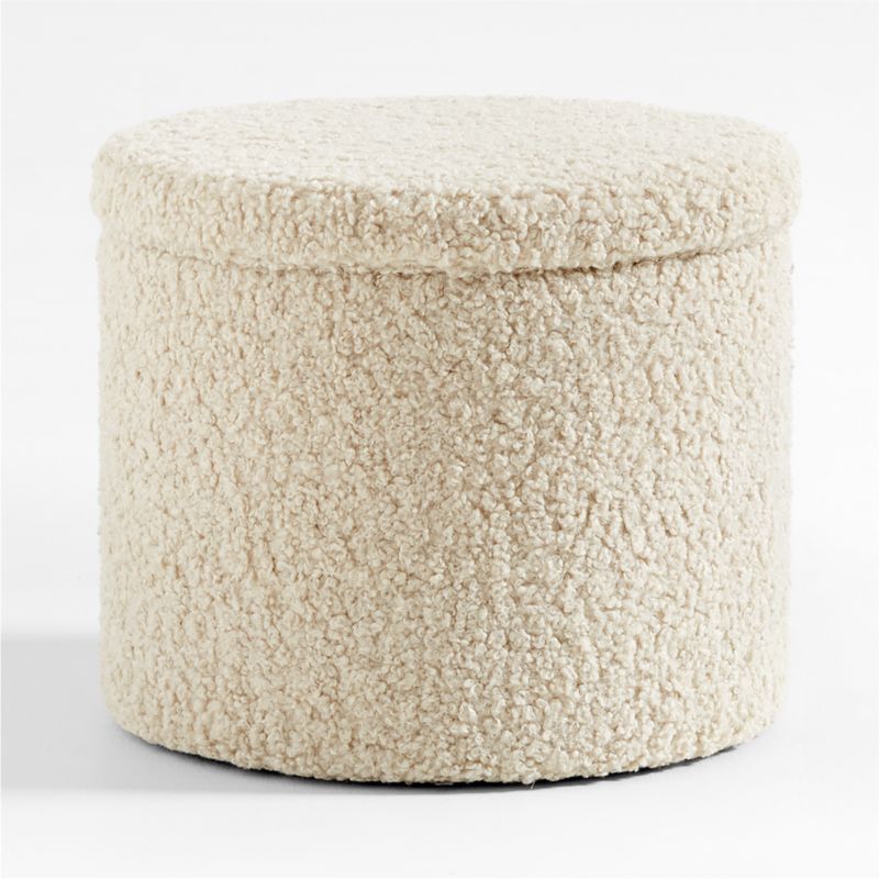 Dot Cream White Sherpa Kids Storage Ottoman and Stool