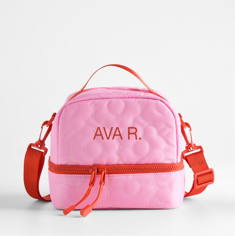 We spoke to hundreds of parents to get our lunch boxes just right. Our Dreamer Dual Compartment Lunch Box is perfectly sized to fit multiple food containers and a water bottle, with an interior divider to keep everything securely in place. In durable, insulated and easy-wipe polyester (that includes recycled plastic bottles), the lunch box features quilted pink flowers and contrasting red details for an easy-to-love look. For extra personality, have it monogrammed with their name or initials.