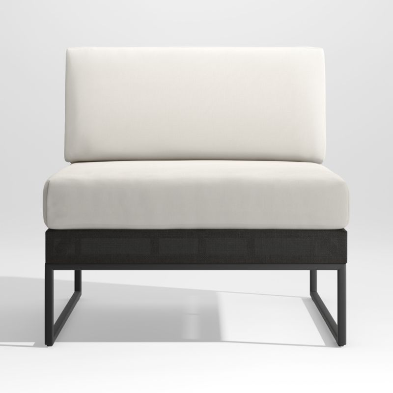 Dune Black Outdoor Armless Chair with White Cushions25.25height30.71width33.86depthMeasurements are in inches.64.14height78width86depthMeasurements are in centimeters.
