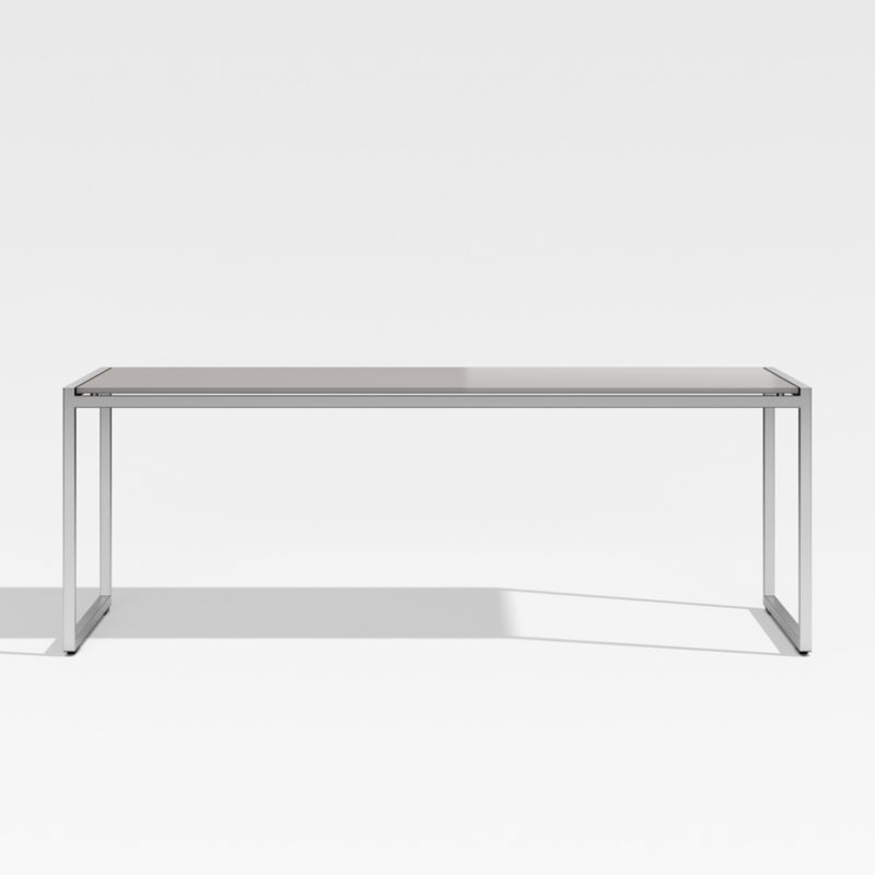 Streamlined urban styling in a contemporary mix of materials makes our Dune lounge collection a truly modern "indoor room" that lives outdoors. The coffee table's linear outdoor-grade stainless steel frame is topped with a sheet of tempered glass, painted taupe on the underside for a modern, luminous look.