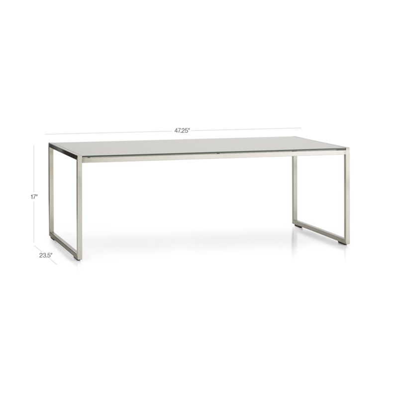 The outdoor coffee table frame is handcrafted with precisely mitered corners and steps of hand-work to create the seamless finish. Dune Coffee Table with Taupe Painted Glass is a Crate and Barrel exclusive.