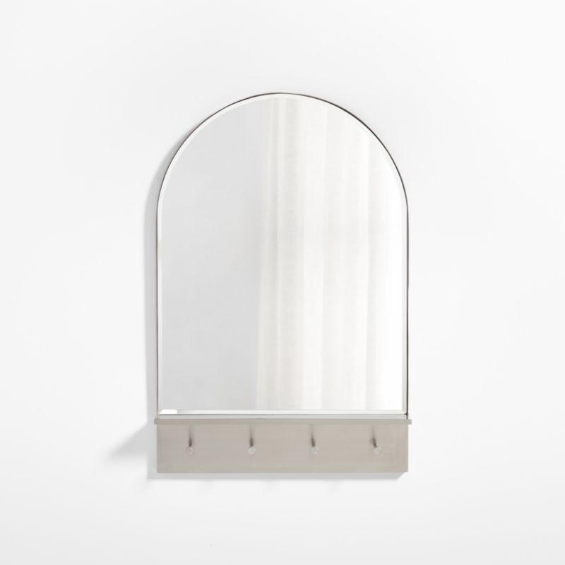 Our Edge mirror brightens your entryway with reflected light, while four hooks and a slim ledge provide the perfect spot for keys, sunglasses, dog leashes and other out-the-door essentials. We love the way it makes the most of even the smallest entryways, offering organization, a sense of space and sleek style. Edged with a slim stainless band finished in black, the minimalist wall mirror curves a subtle arch of modern elegance. Our exclusive Edge collection includes mirrors ideal for bathrooms, bedrooms, above mantels and more.
