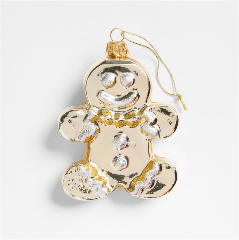 We adore the sweetness this ornament brings to the tree. Lovingly decorated in shades of gold and silver, the glass gingerbread ornament shapes a classic Christmas cookie. This gleaming treat shines in the glow of string lights and makes a sweet gift for your favorite baker.