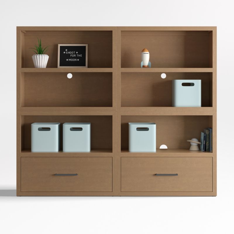 Ever Simple 72" Set of 2 Modular Natural Brown Wood Kids Open Bookcases with Drawers
