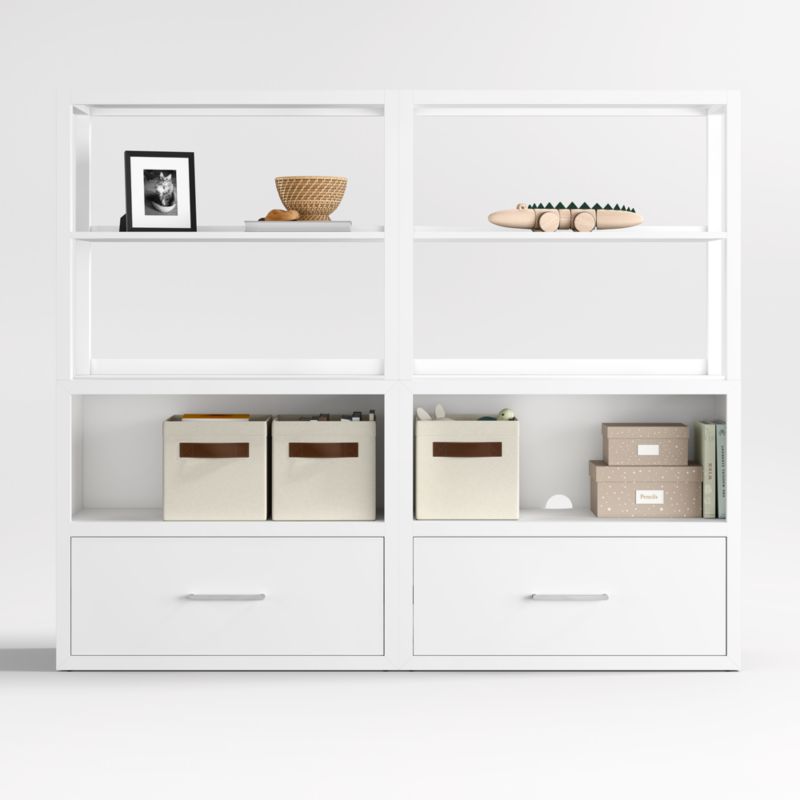 Ever Simple Set of 2 Modular White Wood Kids Drawer Bookcases with Hutches