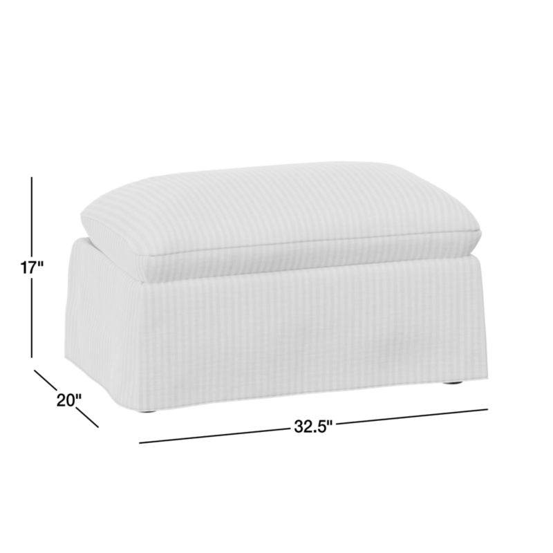 Ever at the ready for everyday life, this slipcovered ottoman exemplifies designer Leanne Ford's relaxed aesthetic. Floating a pillow top on a skirted base, the striped ottoman provides a comfy seat and props up tired feet. Or lift off the top to tuck away blankets, throw pillows, books and toys. The unstructured slipcover is made of a durable linen blend that stands up to real life in a nursery, kid's room or living room. Ever restores its effortlessly chic looks with a quick fluff of the cushions and swipe of the "comfort wrinkles." Pair with our matching chair for an easy-living vibe.
