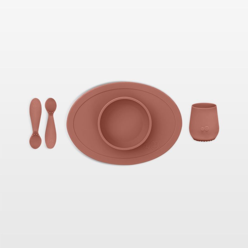 Ready to introduce your baby to mealtime? The First Foods Set from ezpz has everything little ones need to begin eating and drinking independently. It includes a bowl with placemat, cup and pair of spoons, all sized perfectly for tiny hands. Everything in the set is made from 100% silicone that's baby-friendly and dishwasher safe, so you can easily clean up after messy meals.