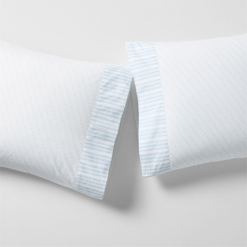 This exceptional pair of pillowcases showcases the artistry of traditional block printing. Carefully hand-printed by highly skilled artisans, diagonal rows of abstracted flowers are accented by ticking-striped hems. The pared-down palette of pale blue on undyed organic cotton keeps the look fresh, pairing effortlessly with our solid and patterned bedding. Charming variations in the printing—one of our favorite aspects of this intensive craft—make each set truly unique. Crisp, soft and lightweight, these pillowcases add beauty and comfort to your bedroom year-round.