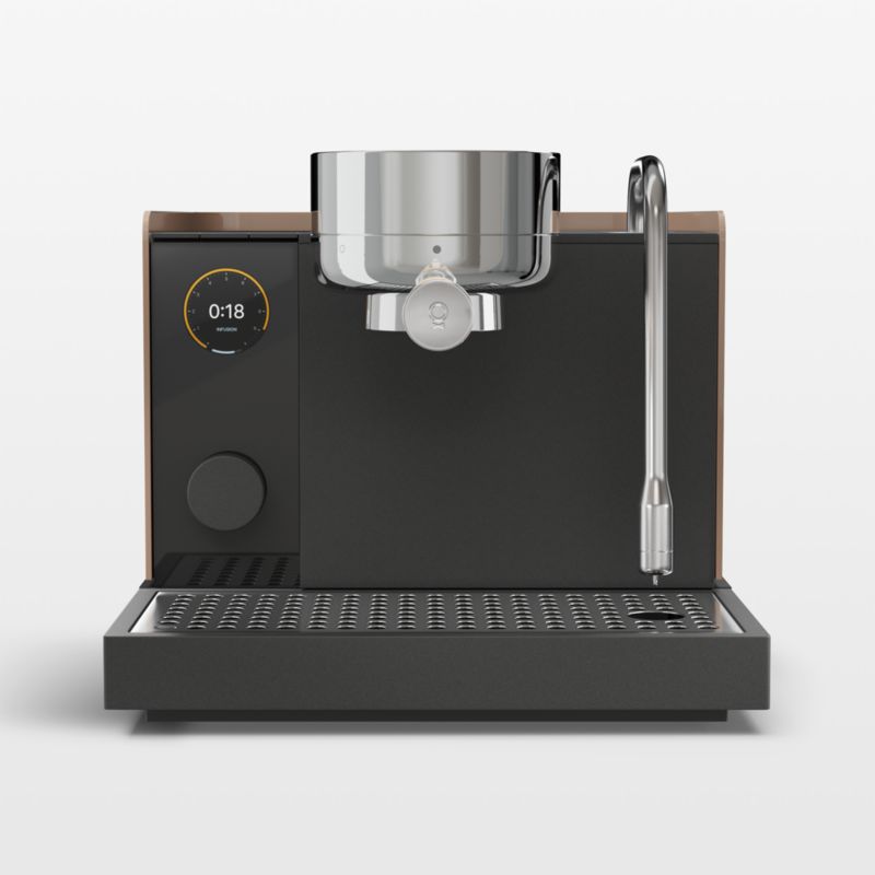 The first espresso machine from the experts at Fellow. Designed for beginners and baristas alike, the Series 1 distills professional-level equipment down to the beautifully simple essentials. Let the onscreen prompts guide your brewing, or craft custom drinks precisely to your preferences (and save your favorite drinks to recreate effortlessly). Three piano key-inspired buttons brew, steam or dispense hot water at a touch, while the large screen with navigation dial allows for endless refinements. Three independent heating elements ensure the machine warms up in two minutes or less and that temperatures remain stable to the exact degree. The steamwand froths dairy or plant-based milk, stopping automatically when your desired temperature is reached. And the machine offers feedback on each shot you pull, ensuring that the next one is even better. Sleek and streamlined in malted chocolate brown accented with maplewood, the Series 1 has a modern, understated presence on your countertop, coffee station or desk.