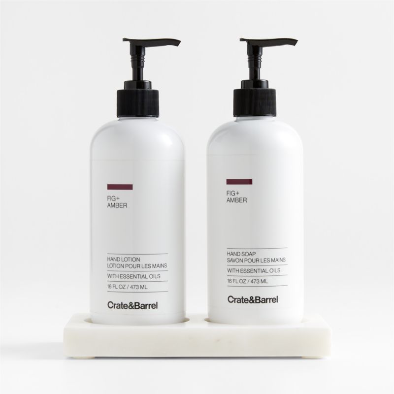 Fig + Amber Hand Soap and Lotion Set with White Marble Caddy
