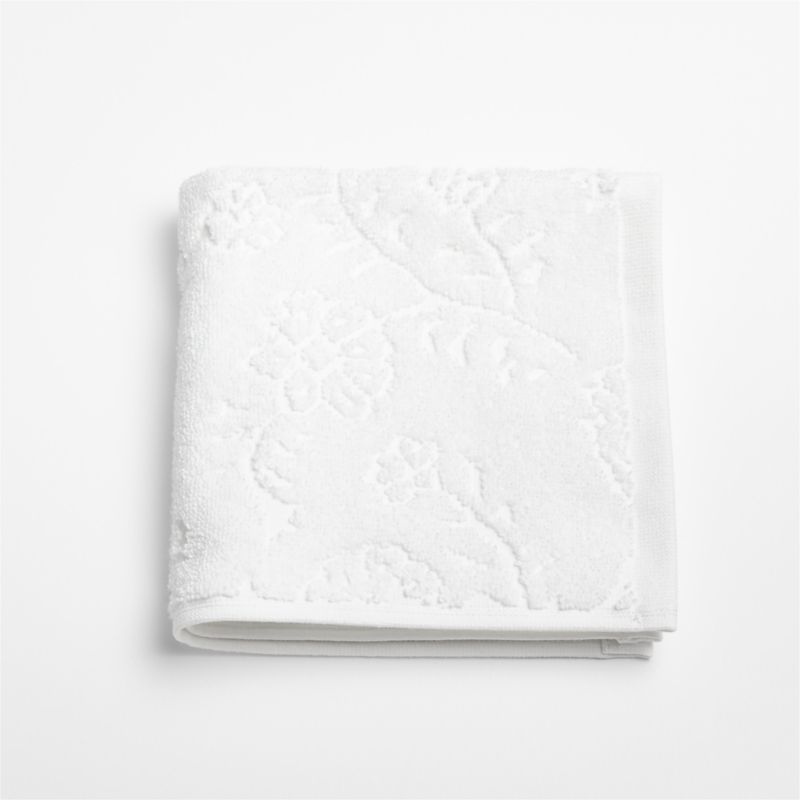 Floral Jaquard Organic Cotton Crisp White Bath TowelFloral Jaquard Organic Cotton Crisp White Bath SheetFloral Jaquard Organic Cotton Crisp White Hand TowelFloral Jaquard Organic Cotton Crisp White WashclothFloral Jaquard Organic Cotton Crisp White Bath Towels, Set of 6Floral Jaquard Organic Cotton Crisp White Bath Towels, Set of 8