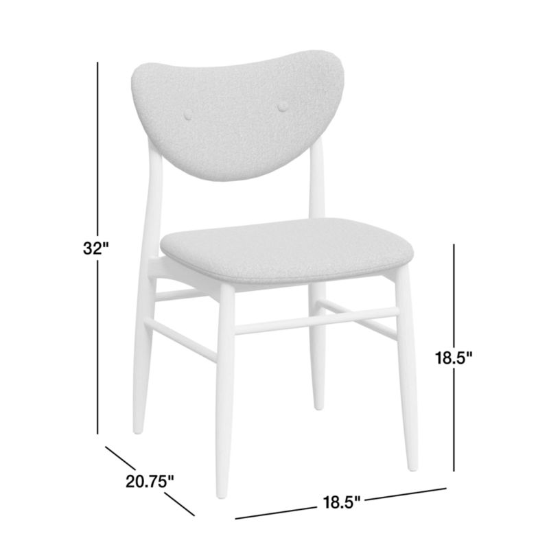 A classic of Danish Modern design revives for modern interiors with our Frederique dining chair. An iconic, half moon-shaped back cushion floats organic curves on the slender frame of natural oak wood, shaped with tapered contours and lightened with an ivory ceruse finish. Wool-blend upholstery complements in rust brown, while adding generous texture in the nubby weave and notable detail with two tufted buttons on the back. We love the side chair's retro heritage revamped with up-to-the-moment style.