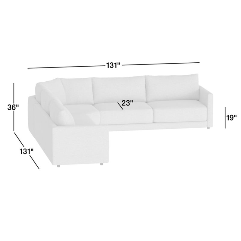 Gather 3-Piece L-Shaped Wedge Sectional Sofa26height131width131depthMeasurements are in inches.66.04height332.74width332.74depthMeasurements are in centimeters.
