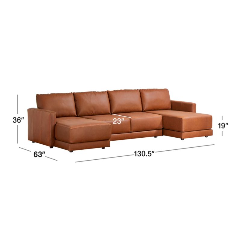 Gather 3-Piece U-Shaped Leather Sectional Sofa with Double Chaise Lounge