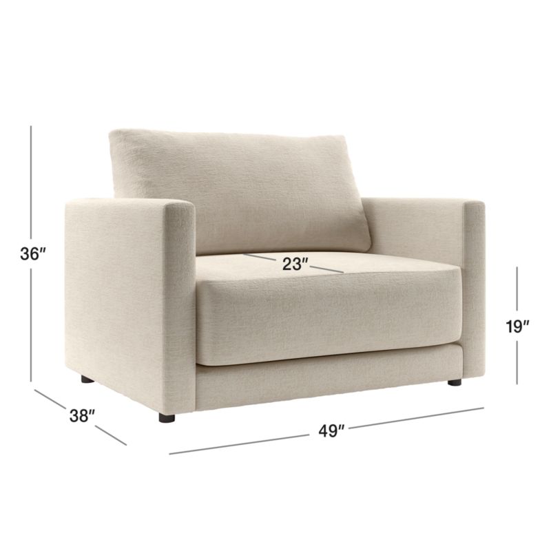 Striking the perfect balance between comfort and modern style, Gather is clean-lined and current. The roomy chair and a half features a boxy, extra-plush seat cushion made with inner-coil construction for maximum comfort and durability. A fiber-filled back cushion settles you in for the ultimate lounge.