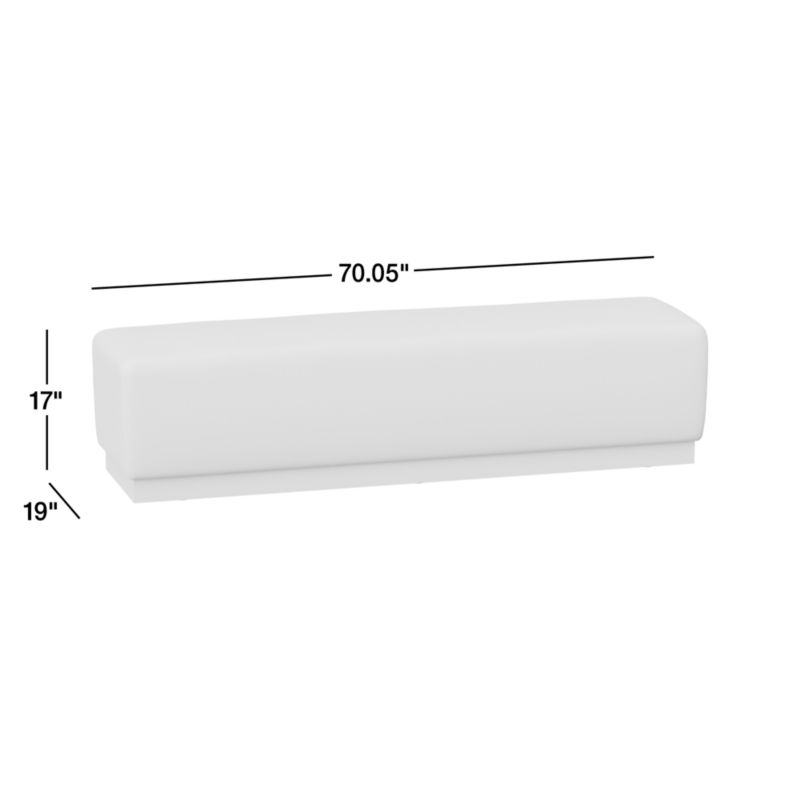 Designed to coordinate with our clean-lined and current Gather sofa and bed collection, this upholstered bench strikes the perfect balance between comfort and modern style. Anchored by an oak veneer plinth base, the oversized cushioned top makes a great landing place for putting on shoes or taking a pause. We love its modern style and go-with-anything mix of materials at the foot of a bed or in an entryway.