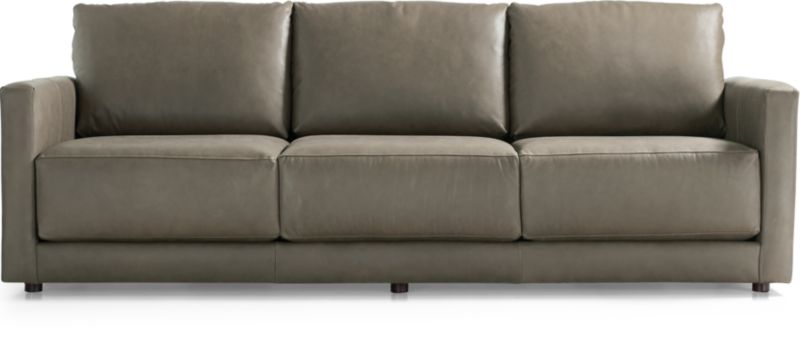 Striking the perfect balance between maximum comfort and modern style, Gather is clean-lined and current. Exquisite leather upholstery gives the sofa a luxurious look and buttery soft hand, while boxy, extra-plush seat cushions made with inner-coil construction offer maximum comfort and durability. Fiber-filled back cushions settle you in for the ultimate lounge.